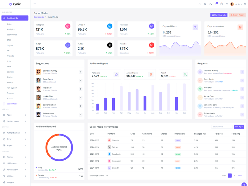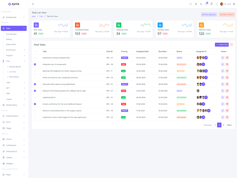 The Zynix Tailwind Admin & Dashboard Template comes packed with ready-to-use features, providing numerous pre-built components that save developers valuable time.