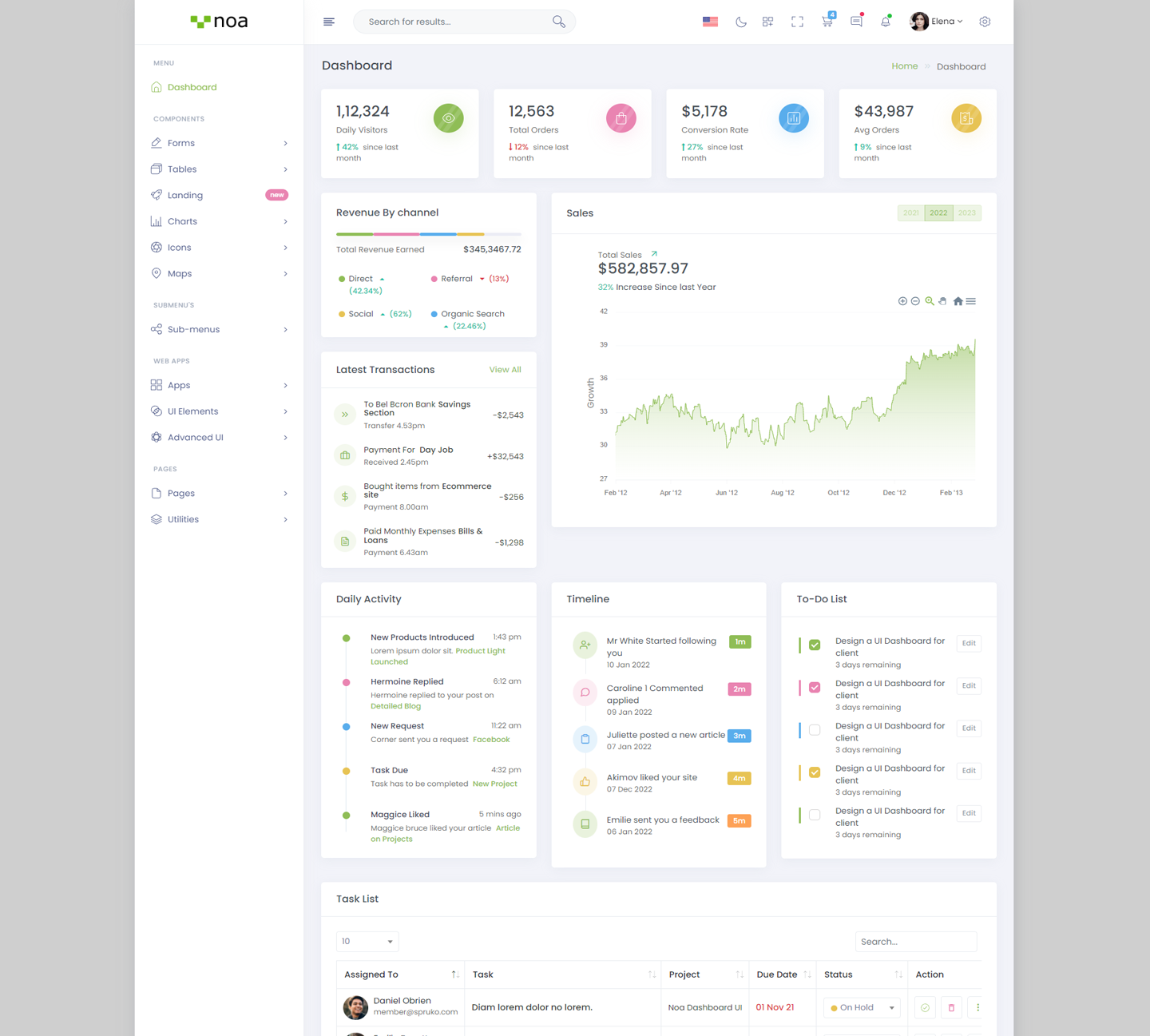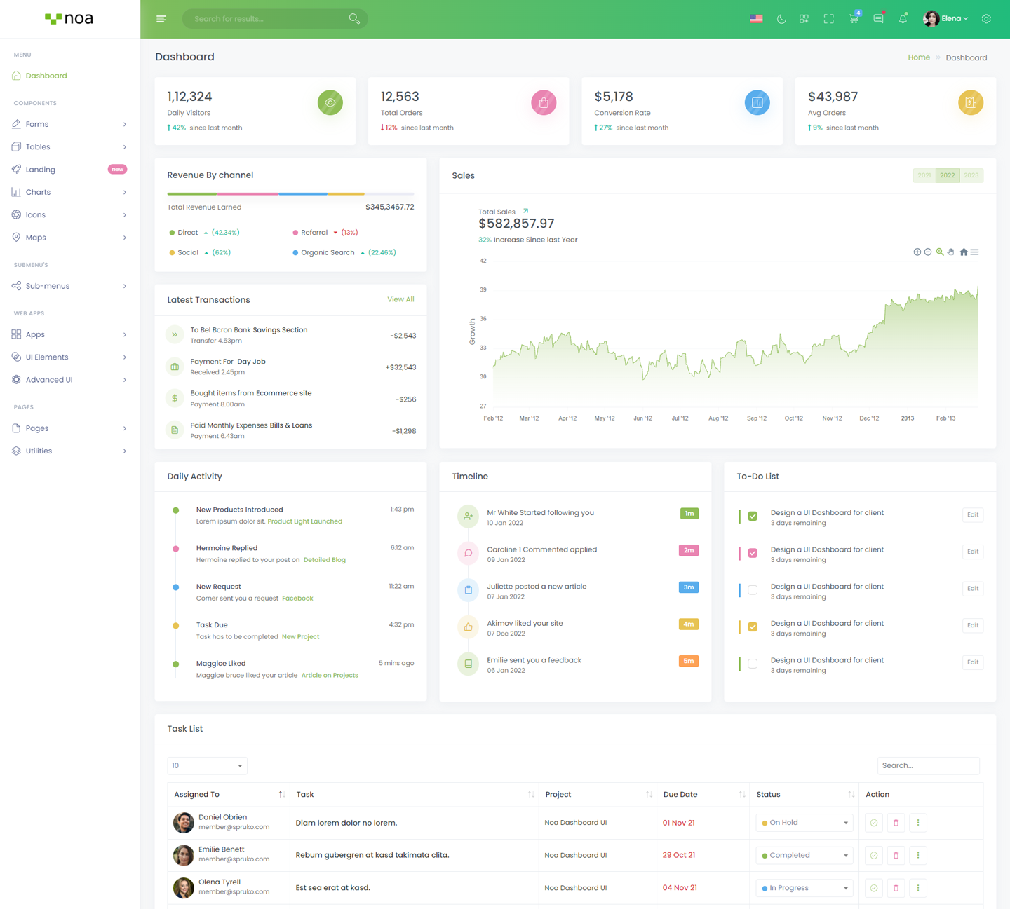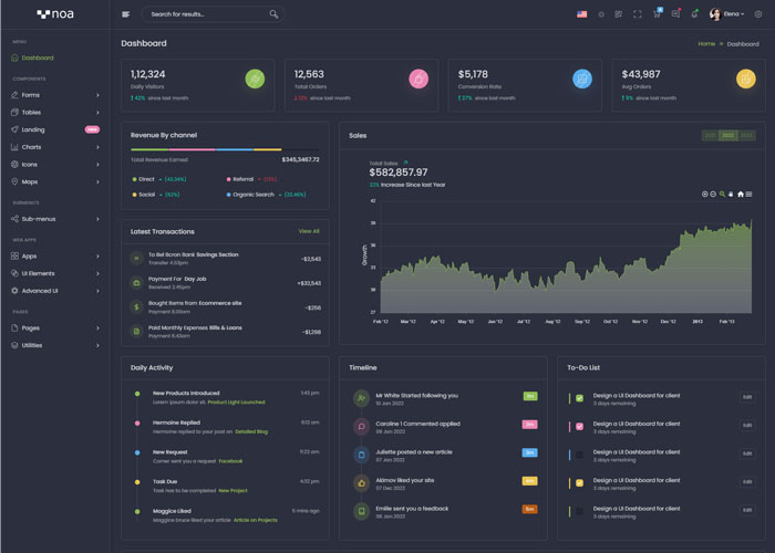 Explore the latest trending features incorporated into the Noa Node JS Admin template, showcasing how we have enhanced and designed our template. When it comes to design, we always keep a close watch on the most trending features.