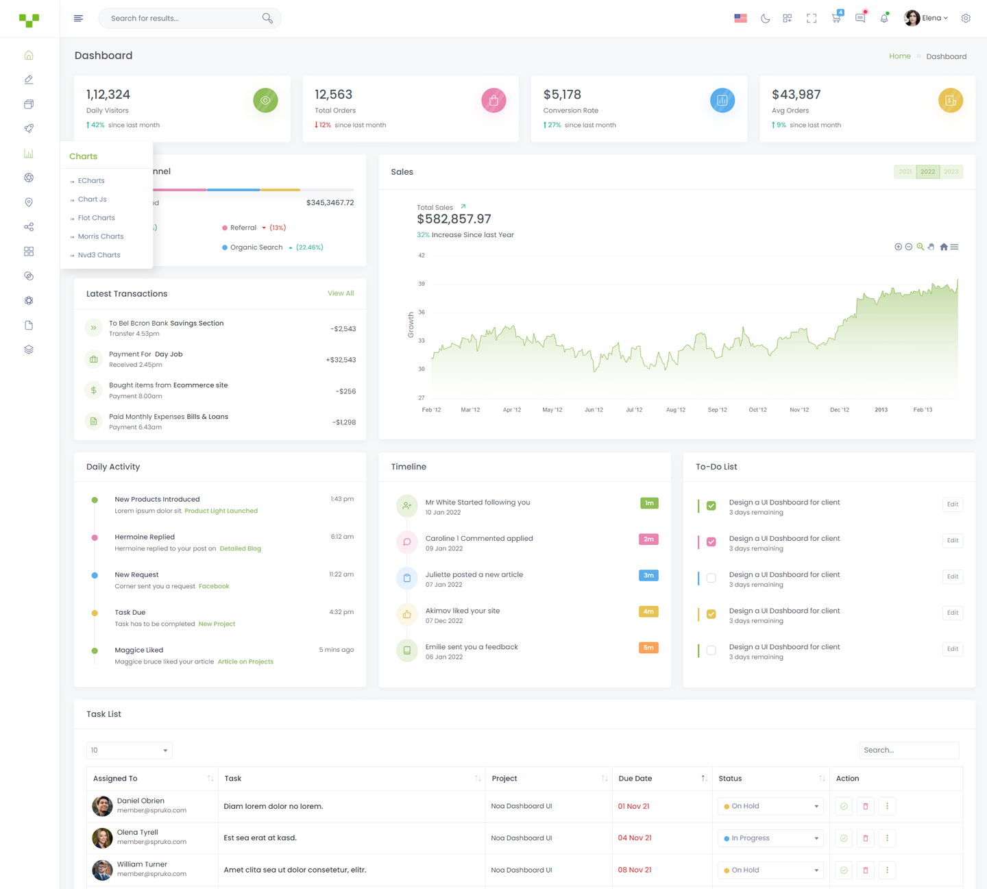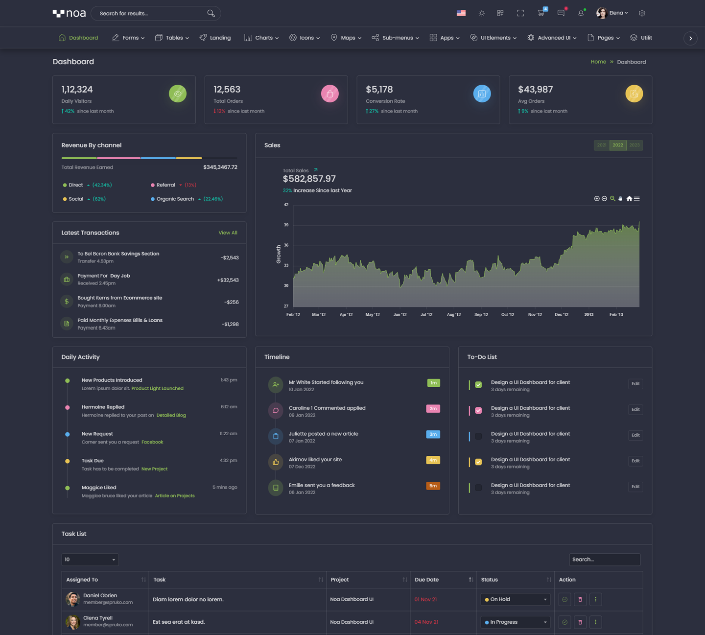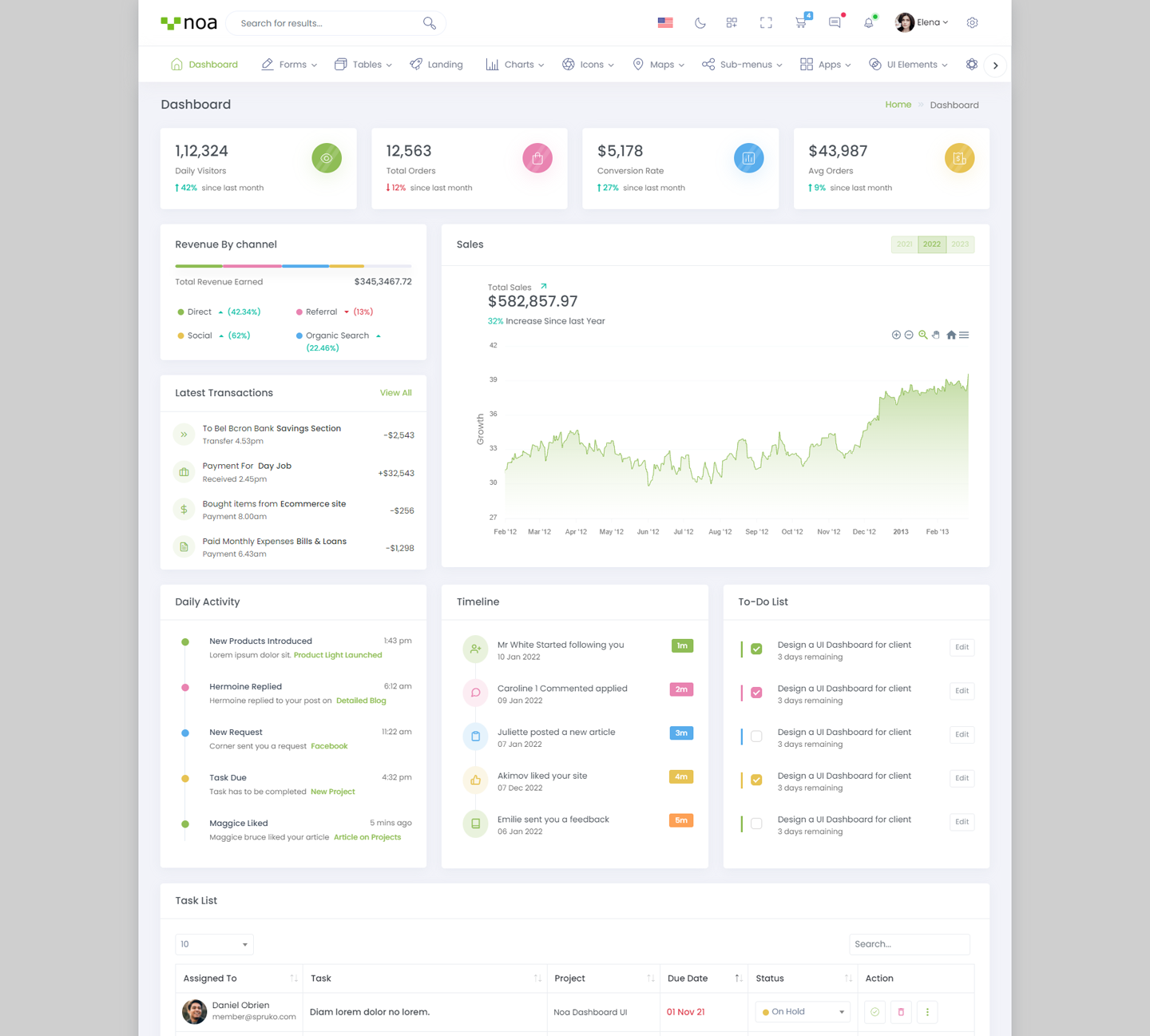 Explore the latest trending features incorporated into the Noa Node JS Admin template, showcasing how we have enhanced and designed our template. When it comes to design, we always keep a close watch on the most trending features.
