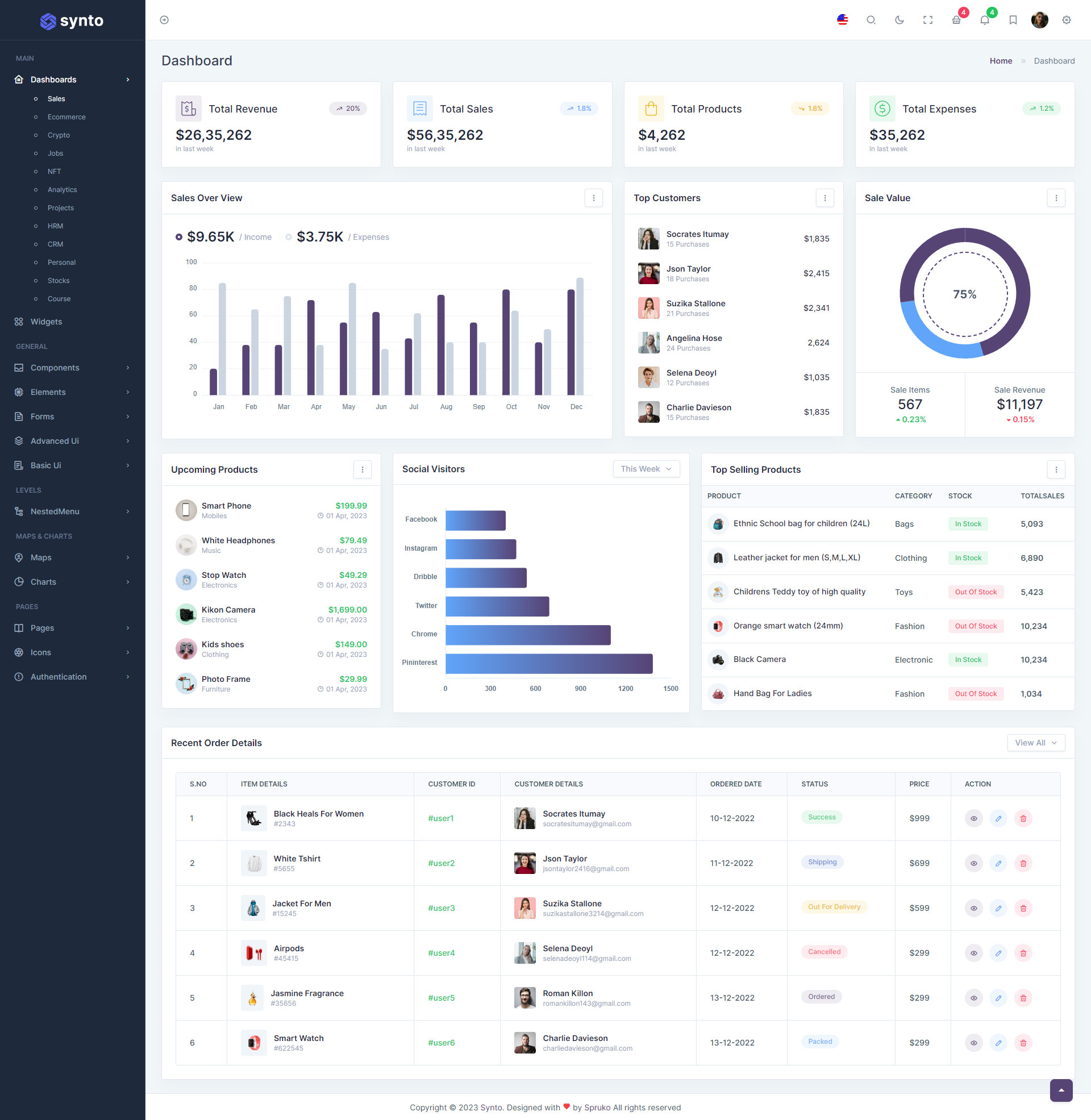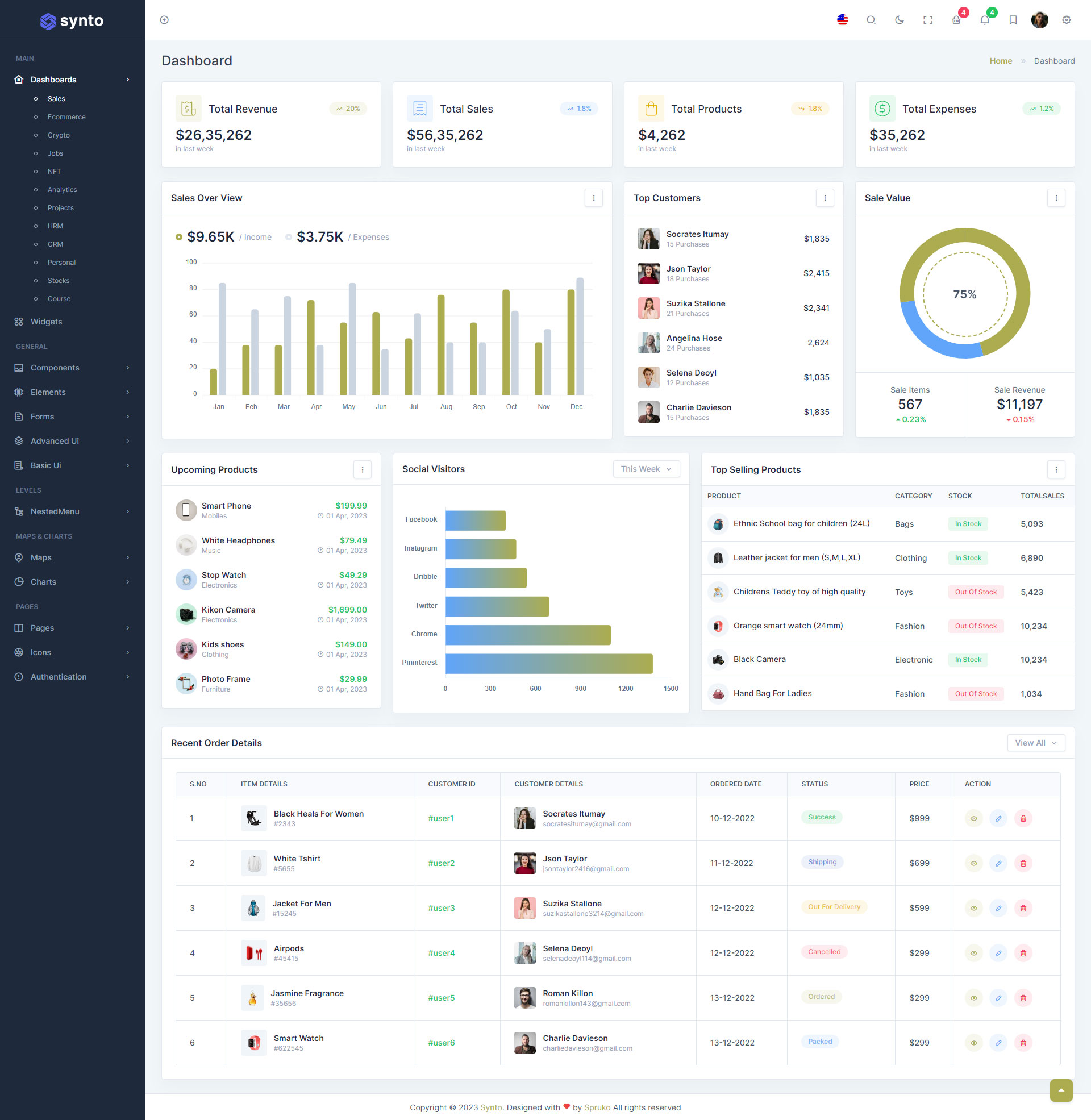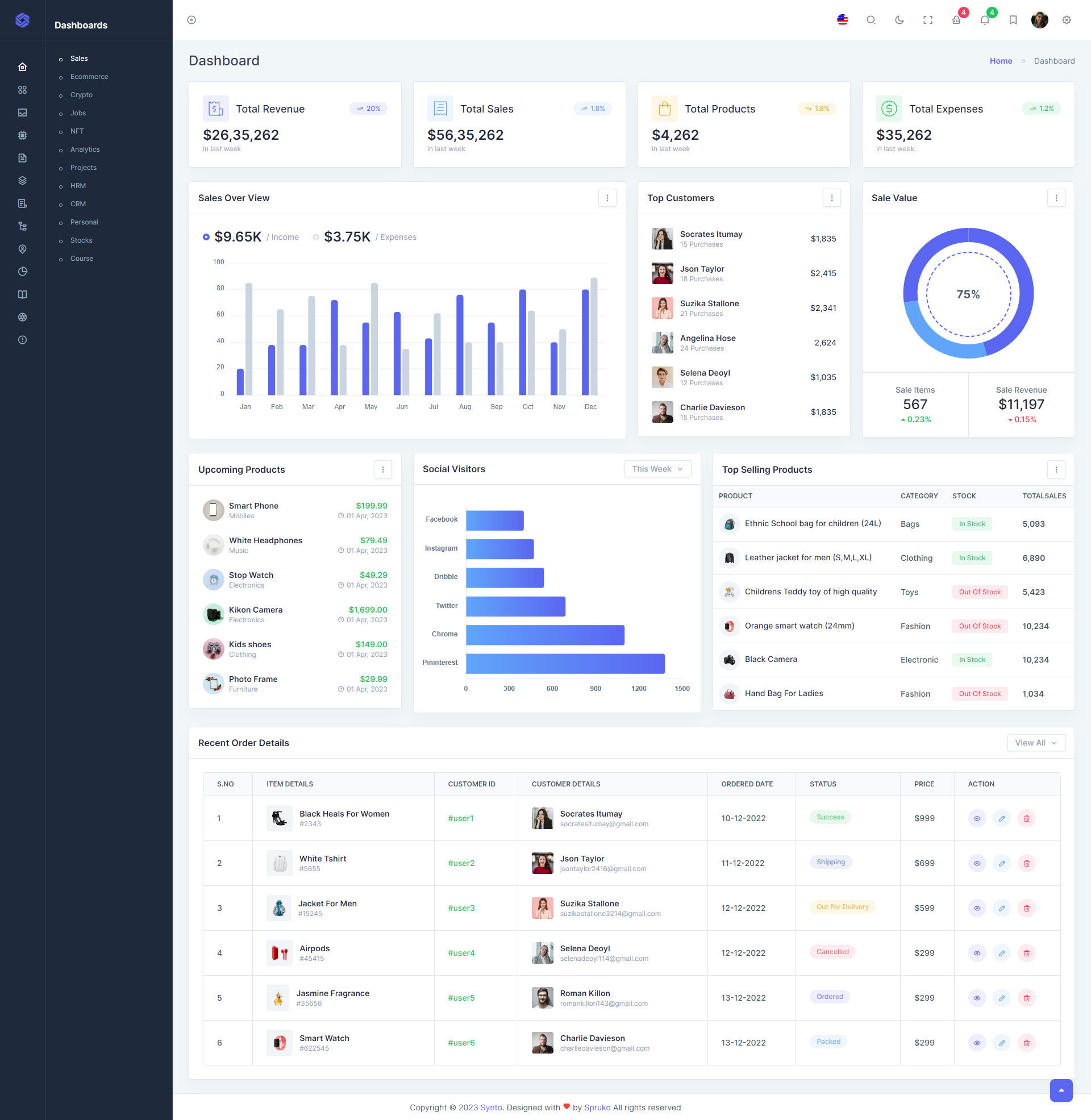 Here are some of the pages in Synto admin template ui design,no need of additional customization required,designed perfectly for ready to use template.