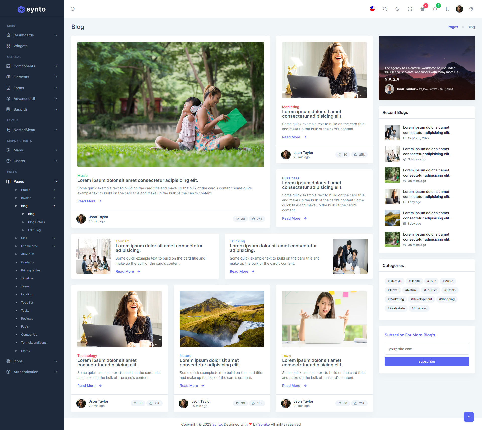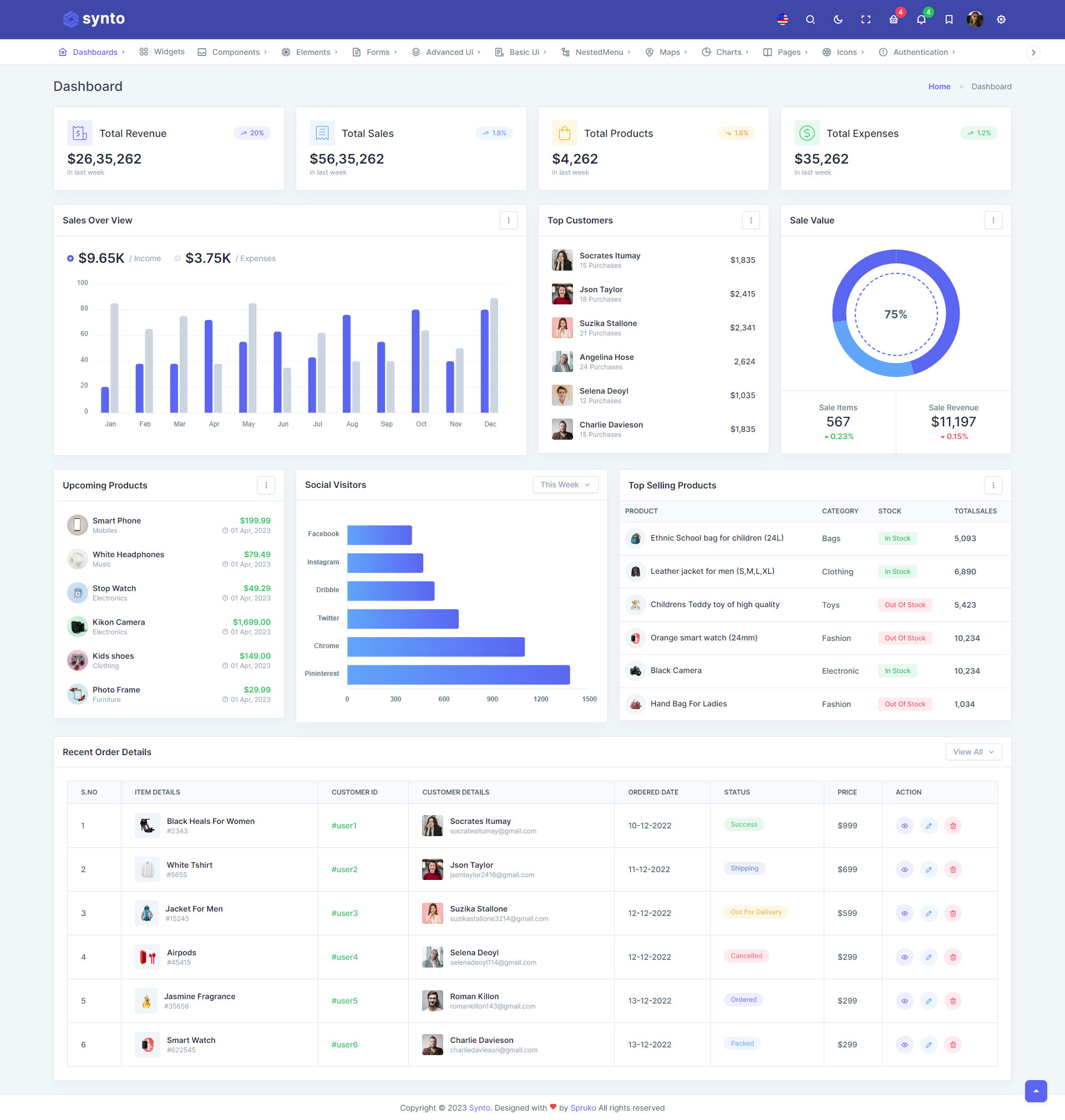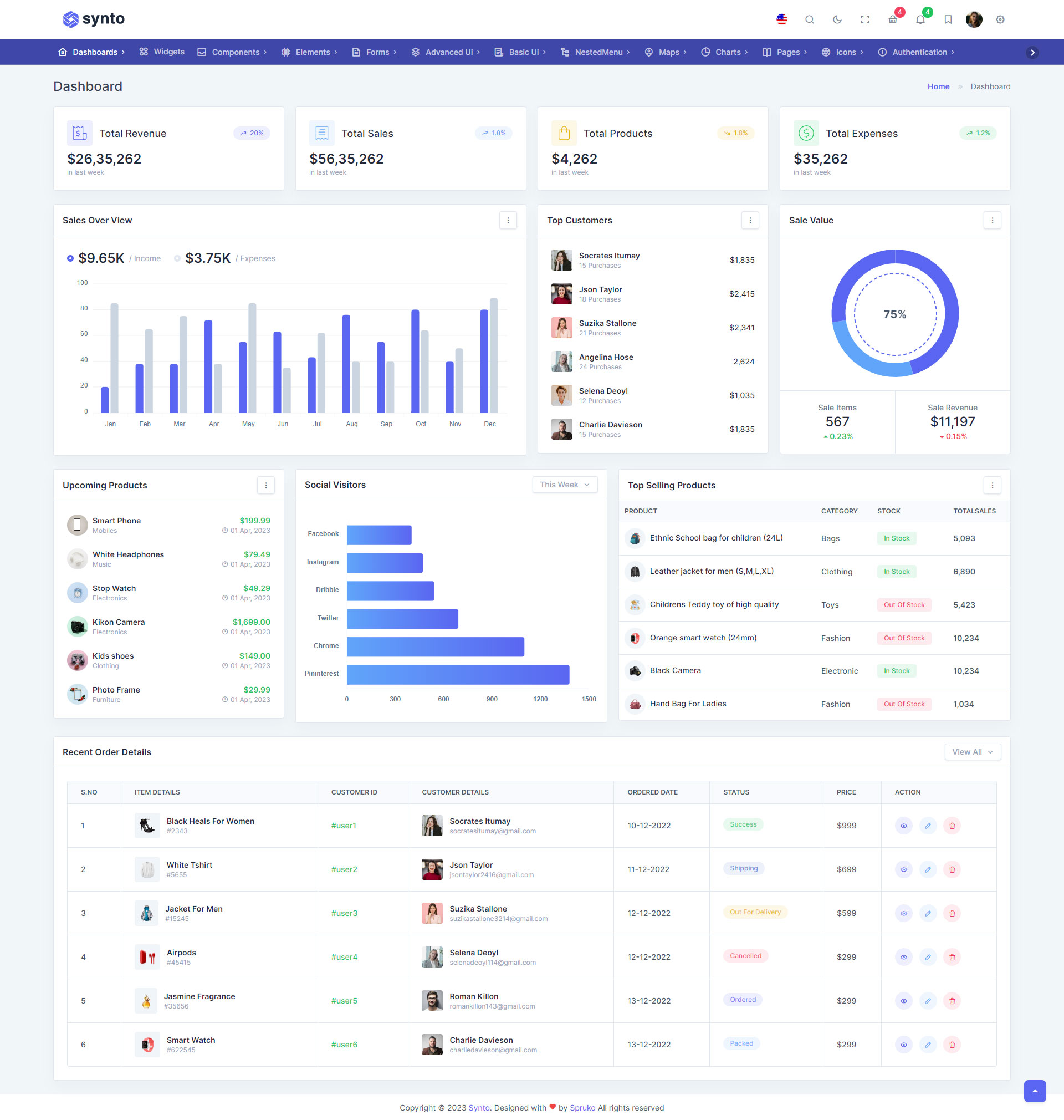 Here are some of the pages in Synto admin template ui design,no need of additional customization required,designed perfectly for ready to use template.