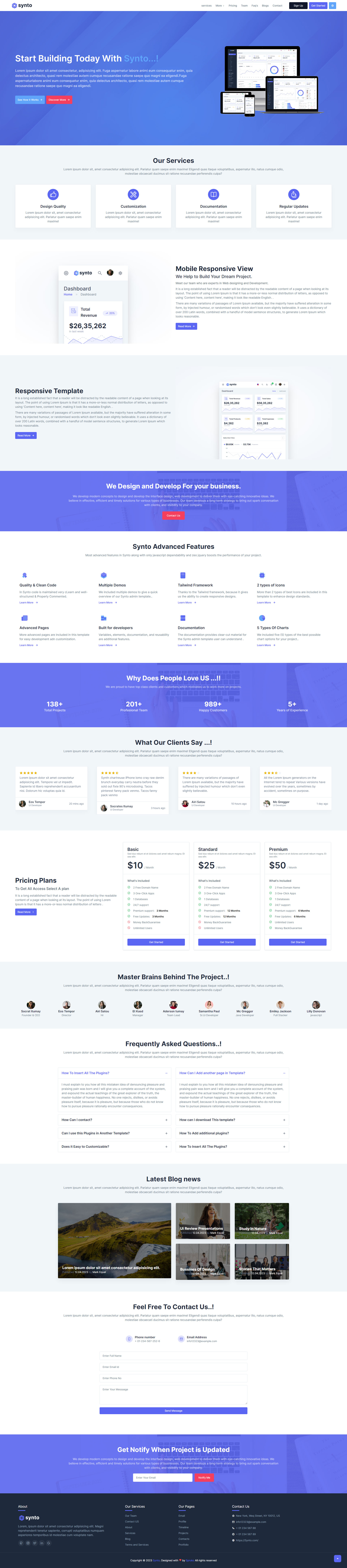 Synto has important features such as the design quality, compatibility with your front-end framework, responsiveness, ease of customization, documentation and support, and additional features such as plugins also integrated.