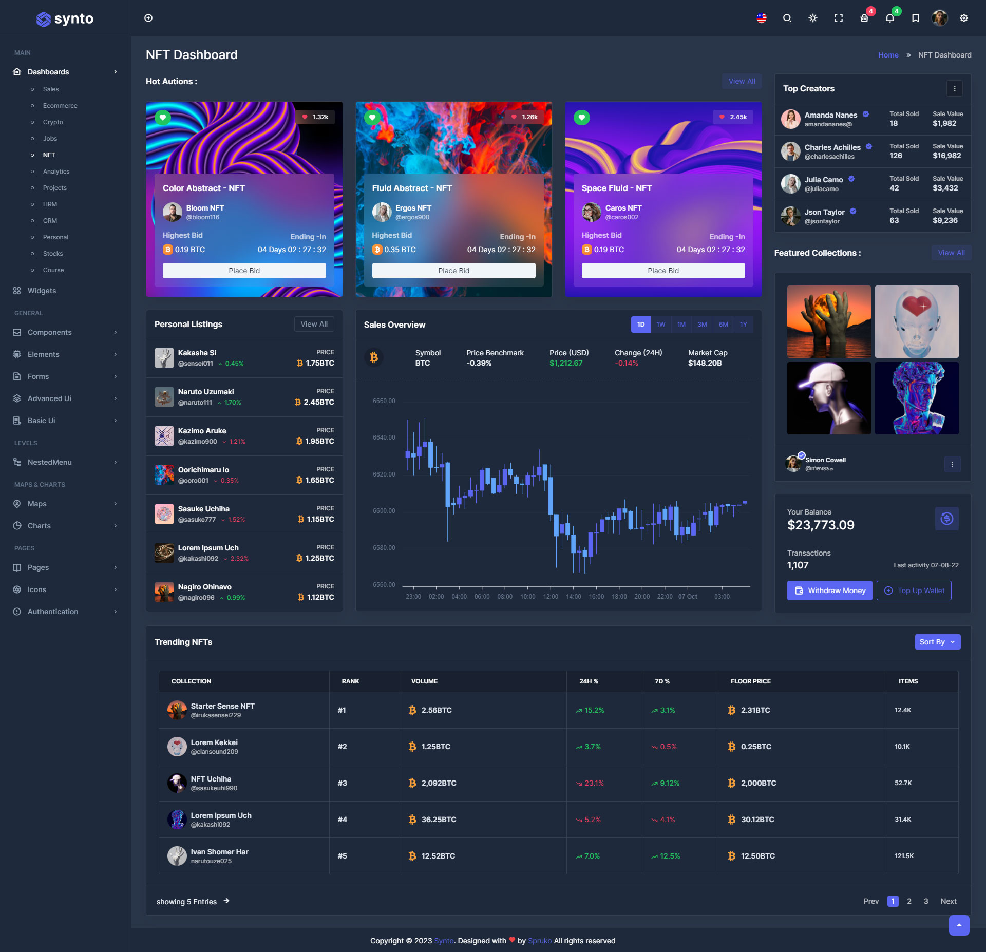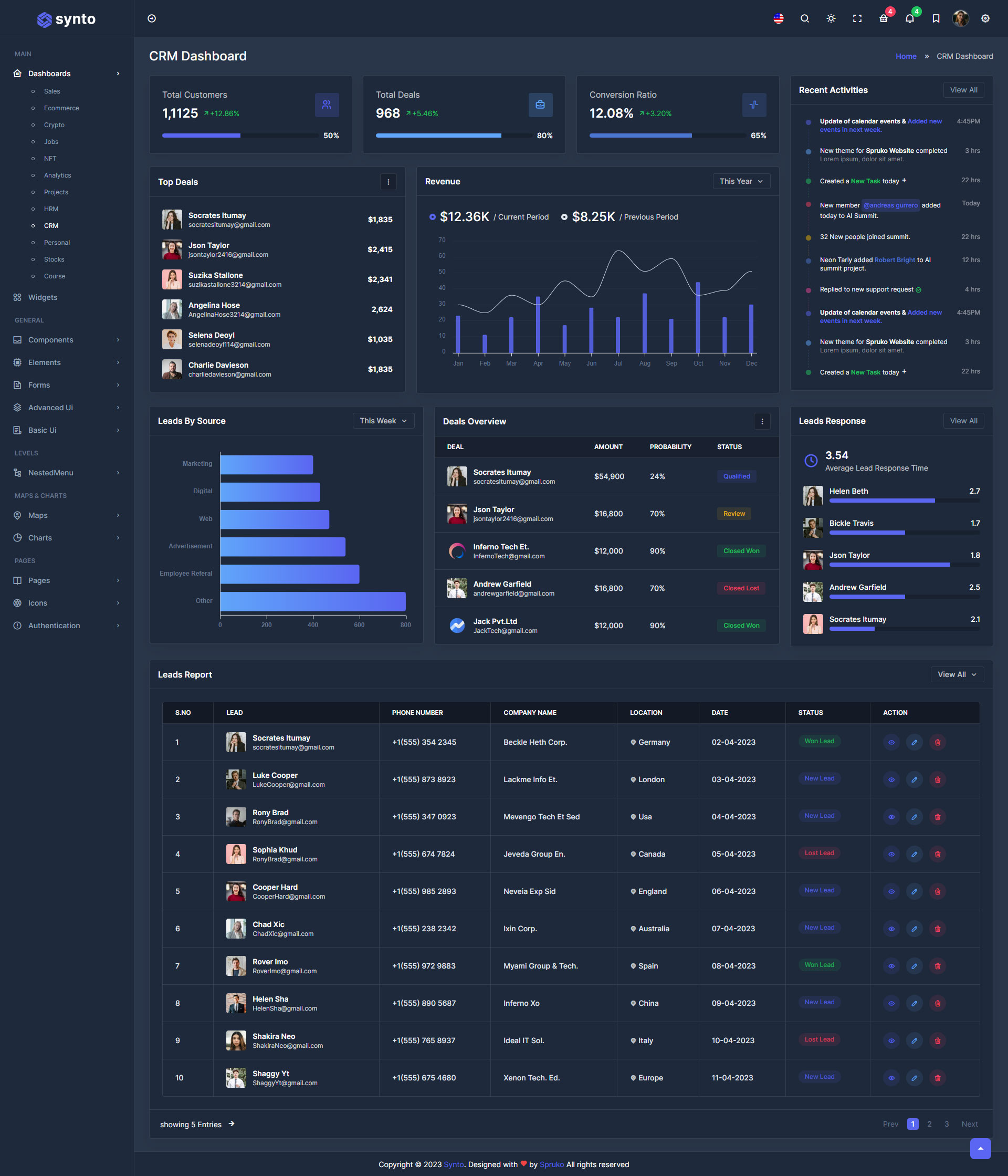 Synto - Now you can use this admin template to design stunning dashboards that will wow your target viewers or users to no end. To create a good and well-structured dashboard, you need to start from scratch with Twig, SCSS, CSS, and JS and with lots of coding, but by using this Synto - Symfony Admin template, you can customise your dashboard effortlessly within no time.