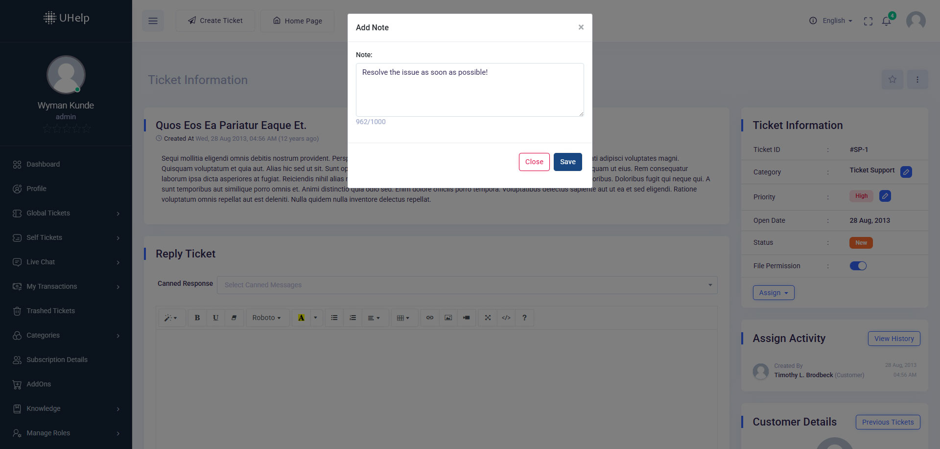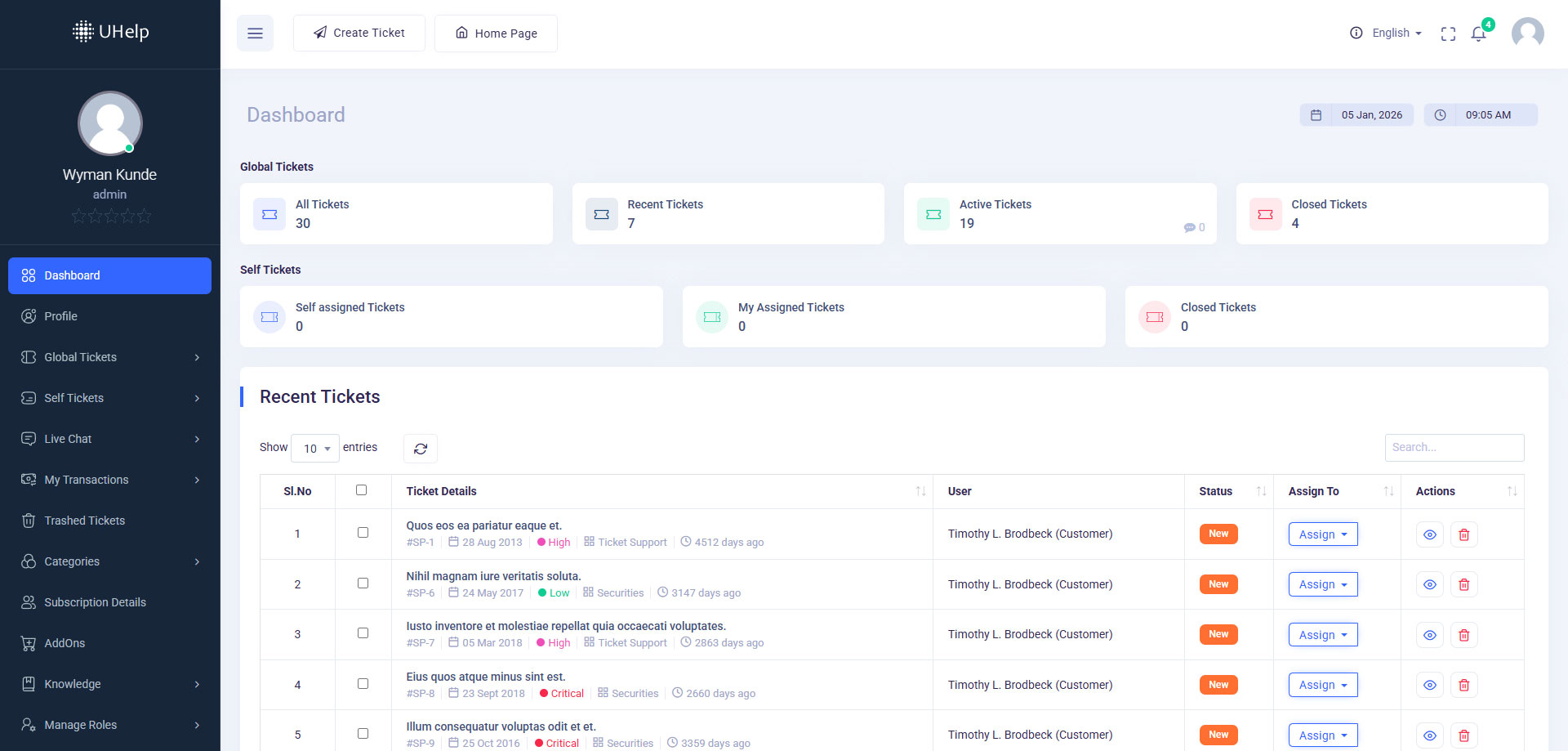 Uhelp is built for teams that need a modern, open-source helpdesk and IT support ticketing system. Whether you’re running a SaaS product, supporting clients as an agency, or managing internal IT requests, Uhelp keeps tickets organized, streamlines workflows, and makes customer support easier for everyone.