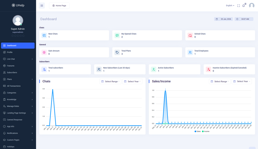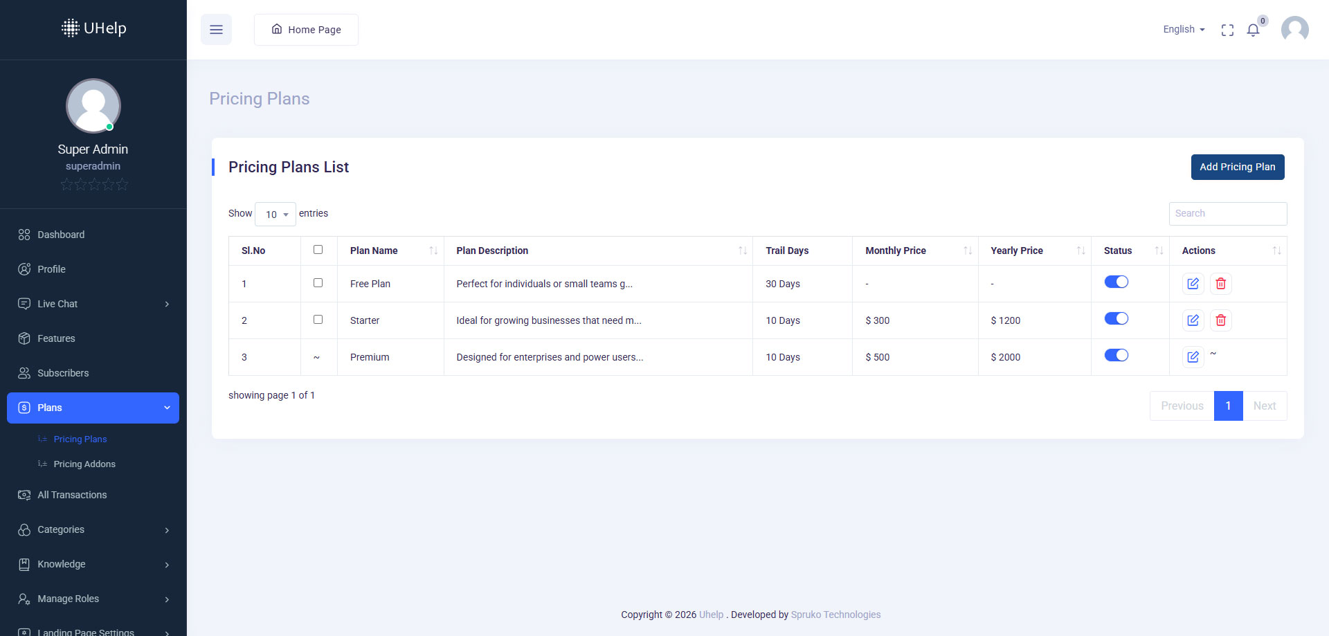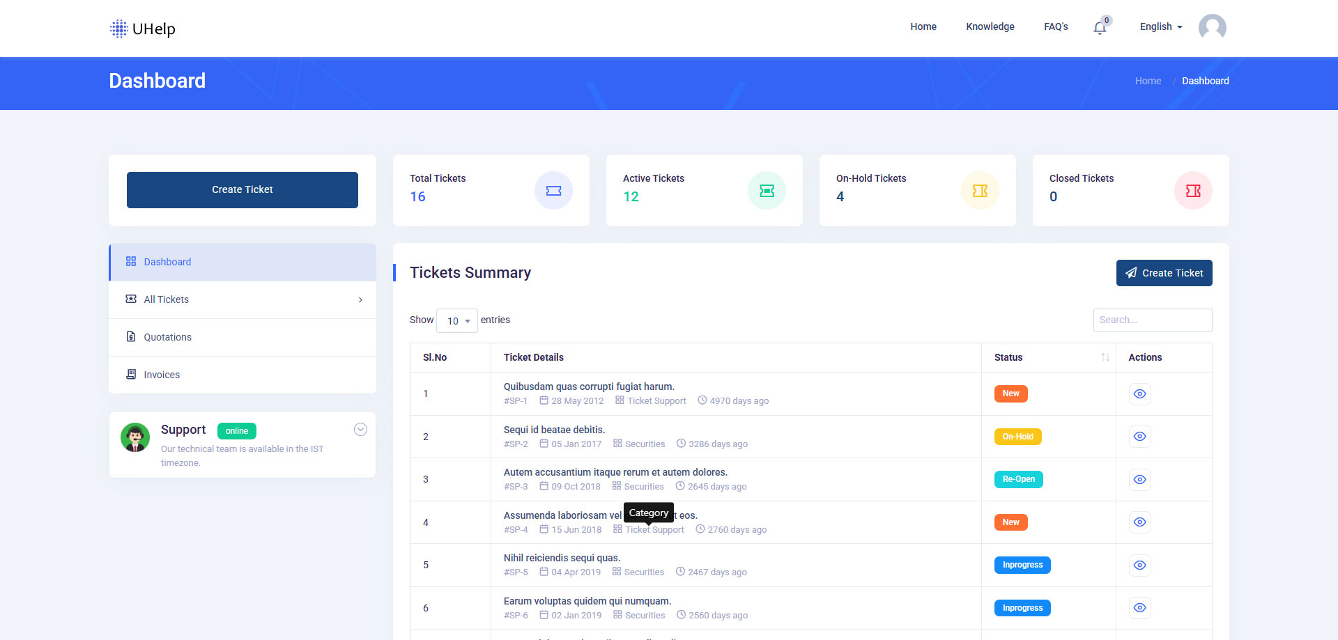 Uhelp lets you track, sort, and manage all support tickets in one place for faster responses and organized workflows.
