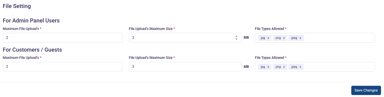 Note : Please click on the “Save Changes” button after setting up your file settings.
