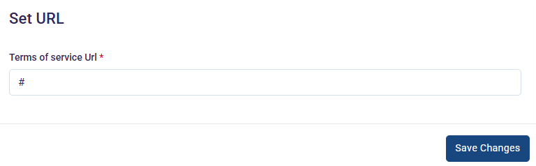 Admin panel->App Settings->General Settings. There you will find a section called "Set URL" with an input field of "Terms of Service".