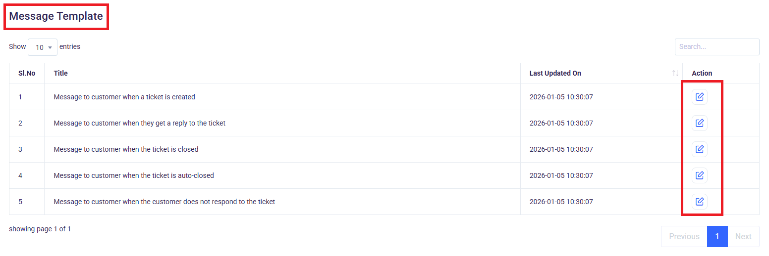 Users can tailor these templates according to their preferences. The customized templates will be sent as ticket updates to customers.