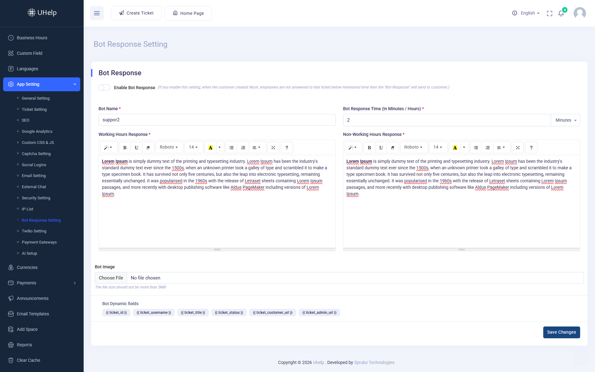 Admin Panel -> App Settings -> Bot Response Setting page.