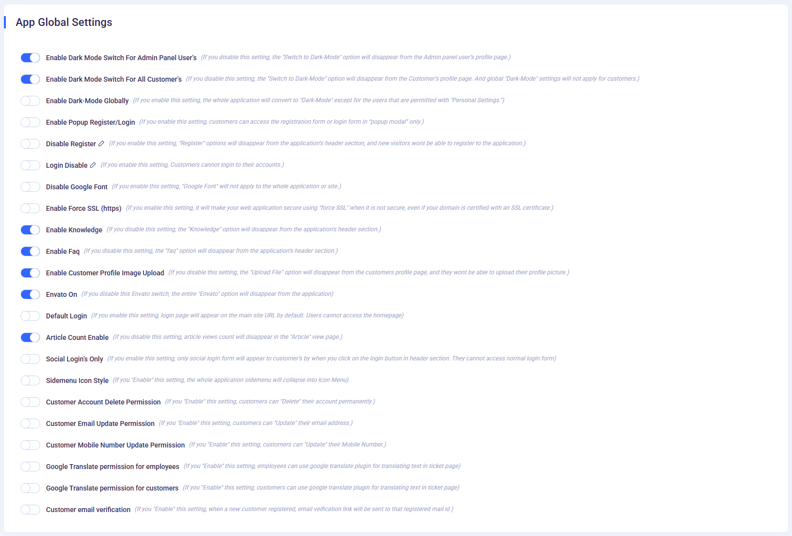 Admin Panel->App Setting->Google Analytics. Now click on the toggle switch button of "Enable Google Analytics" to enable and type the "Tracking ID" in the input field and click on the "Save Changes" button to apply the changes.
