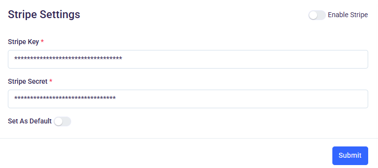 To generate Stripe API keys (publishable and secret) for your application, follow these steps: