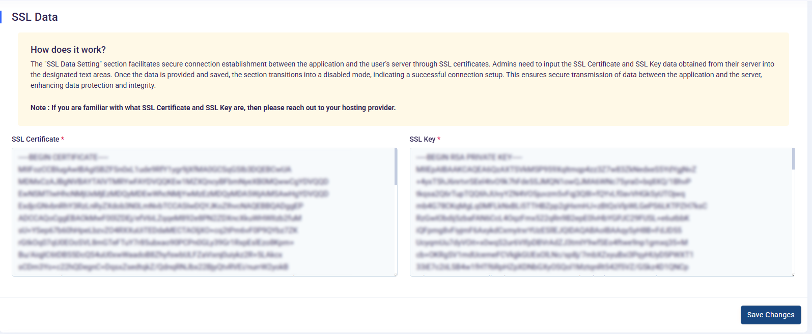 After entering the SSL data, click on the "Save Changes" button to apply the configuration.