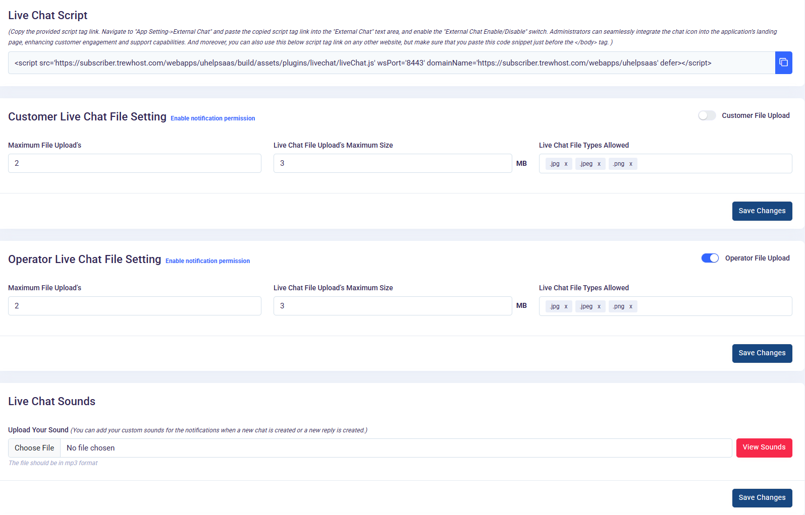 These settings collectively enable seamless integration and functionality of the live chat feature, enhancing customer support interactions and satisfaction.